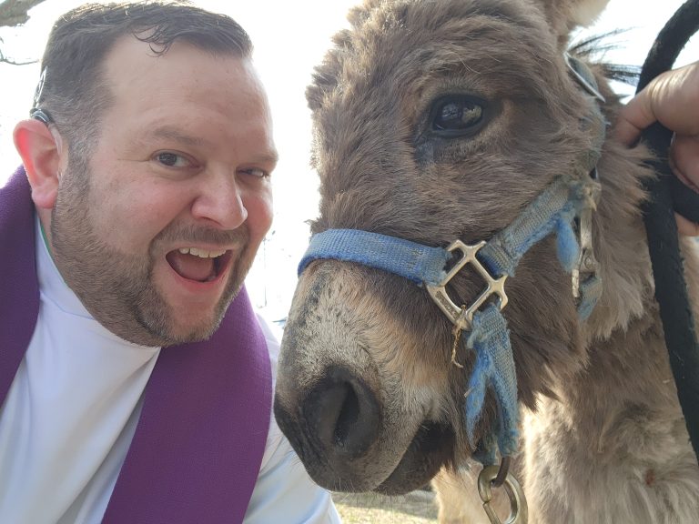 Late in the Palm Sunday worship service, we’ll invite everyone to head outside and gather under the canopy. From there, our parade will begin, led by our very special guest … the donkey! (A friendly reminder: please stay behind the donkey as we walk.)